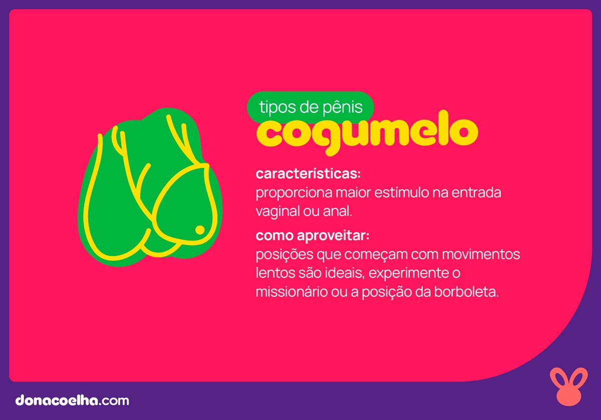 O pênis em forma de cogumelo é caracterizado por uma glande (a cabeça do pênis) mais larga do que o corpo. Esse formato pode ser muito interessante durante a penetração, já que a diferença de largura cria sensações diferentes.